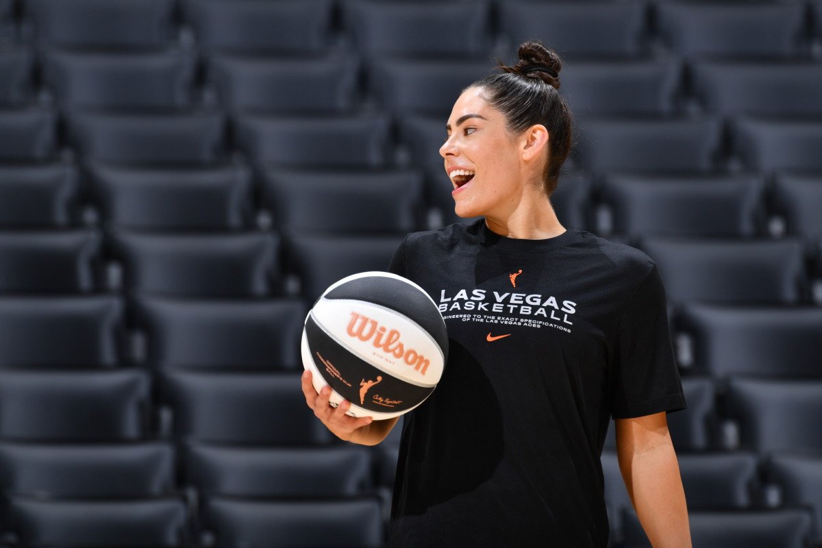 LAS VEGAS, NV – JUNE 11: Kelsey Plum #10 of the Las Vegas Aces looks on before the game against the Minnesota Lynx during the 2024 WNBA Commissioner’s Cup game on June 11, 2024 at the Michelob ULTRA Arena in Las Vegas, Nevada. (Photo by Jeff Bottari/NBAE via Getty Images)Jeff Bottari/Getty Images