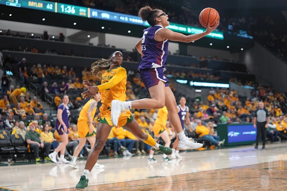 Olivia Miles had arguably the best game of her college career against the Bears, scoring a career high 40 points along with six rebounds, three assists, two steals, and one block. Miles was on fire from three point range, knocking down 10 of 20 attempts from beyond the arc. Miles’s third quarter performance is arguably the best quarter of basketball in program history as she knocked down seven threes and scored 23 points in 10 minutes. When Miles transferred to TCU, she was largely viewed as a pass first player and while she still averages over six assists per game, her scoring ability has won numerous games for TCU this season. Miles’s confidence has soared under Mark Campbell’s pick-and-roll heavy system as she is averaging over five points per game more this season than she did last year. This was an all time outing from Olivia Miles and factoring in that she did it on the road against TCU’s biggest rival and a ranked opponent makes it even more special.